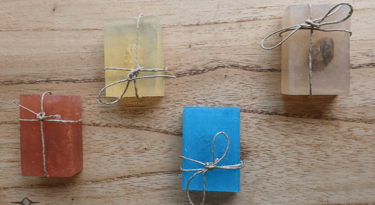 Vous trouverez donc dans chaque savon la pierre qui s'y rapporte. Les savons sont parfumés avec des huiles essentielles dont les propriétés vont de pair avec celles des minéraux.