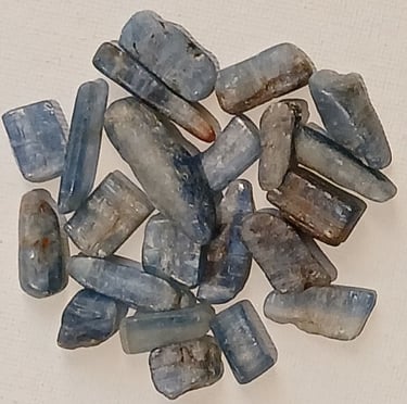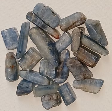 Pierre de connaissance de soi. Elle aide à changer de comportement afin d'effectuer de nouveaux choix. La cyanite apaise les frustrations, les complexes et les angoisses. Elle favorise les pensées logiques et rationnelles ainsi que la motricité et l’adresse.