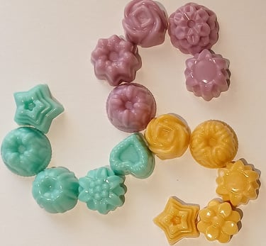 Ces petits savons sont nés de différentes expérimentations autour des huiles pour le visage (voir l'article portant ce nom). Je souhaitais, à partir des propriétés des huiles essentielles et de leurs qualités pour la peau, déceler différents parfums.